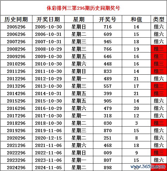 2025年11月6日胪列三第296期开奖,历史同本事别开出奖号: