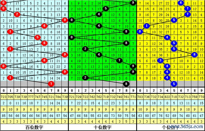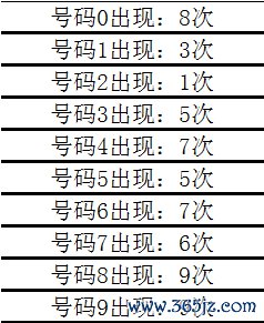 另外,在历史同时开奖中,号码0-9辞别出现: