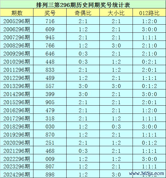 罗列三第2025296期开奖日历:2025年11月6日,历史上第296期已开出了20次奖号,积年同时号码差别为:716、609、945、766、646、448、833、489、557、399、905、479、318、030、870、251、468、009、807、898。